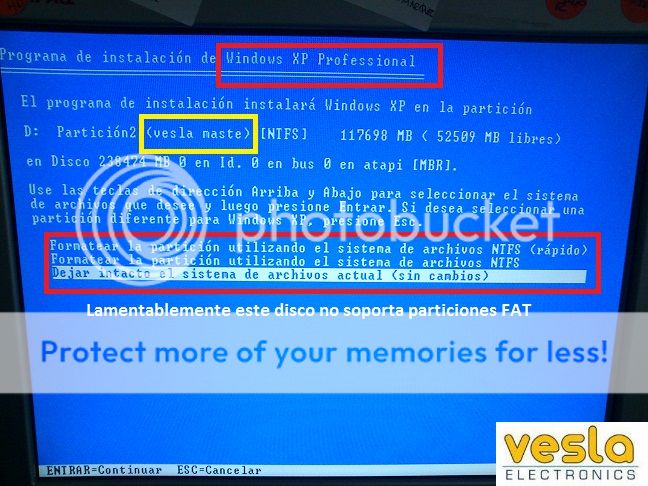 solo lo puse como ejemplo en la parte de seleccion obviamente no encontre la pantalla exacta de la parte de la instalacion, podrias tu subir o encontrar una? porque todos los xp que instalado solo me dan esas 4 opciones nfts normal o quick y fat normal o quick no recuerdo ese de dejar intacto el sistema de archivos como lo hace win 7 al momento de sobre escribir la particion y guardar todo en windows old.