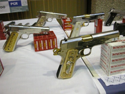 6.- Super Pistola Colt .38. Es similar a la Browning .45 automatica, pero menos potente. Legal en Mexico, es mas barata en EU