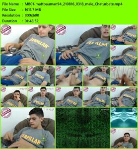 Amateur Boy Webcam Matt Bauman 02 Rapidgator 800*600p 1,61 GB 108 min. https://rapidgator.net/file/244bc77...bauman94_210816_0318_male_Chaturbate.rar.html