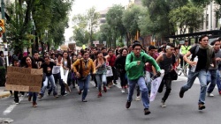 Coreando consignas como “Enrique, entiende: no eres presidente”, “Detrás del copetón está el pinche pelón” o “México sin PRI”, los estudiantes avanzaron a las 14:30 horas desde la Estela de Luz, en Chapultepec, surcando Campos Elíseos, para arribar a Circuito Interior, San Cosme y, al Monumento a la Revolución.