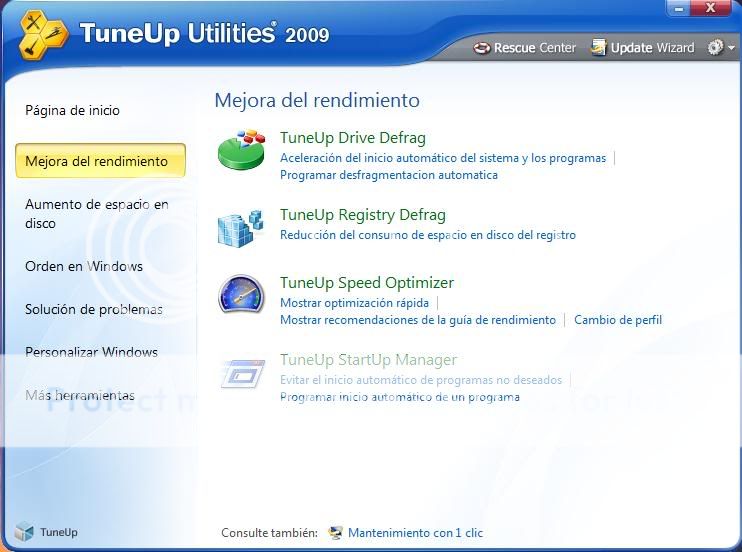 Lo habren se van a Mejora del rendimiento y le damos a TuneUp StartUp Manager.