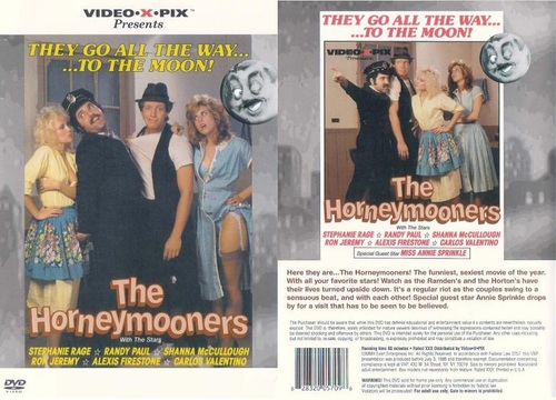 Here they are ... THE HORNEYMOONERS, the funniest, sexiest movie of the year, with all your favorite stars. Watch as the Ramden's and the Horton's have their lives turned upside down. It's a regular riot as the couples swing to a sensuous beat, and with each other. Special guest star Annie Sprinkle drops by for a visit that has to be seen to be believed. They go all the way...to the moon!